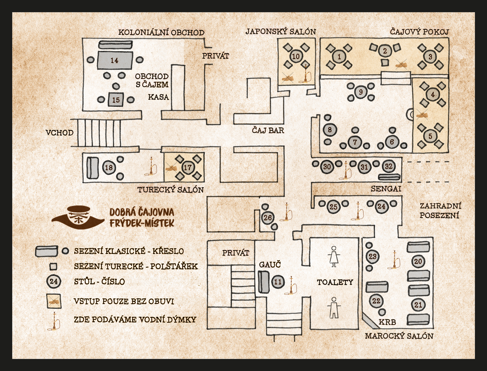 Pro lepší orientaci přikládáme mapku čajovny.